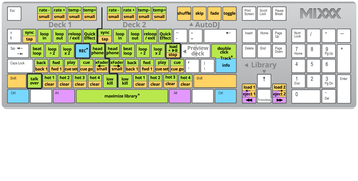 Mixxx Keyboard shortcuts (for en-us keyboard layout)