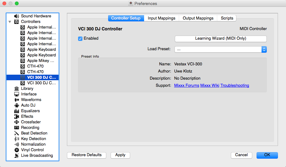 Mixxx Preferences - Loading a controller mapping
